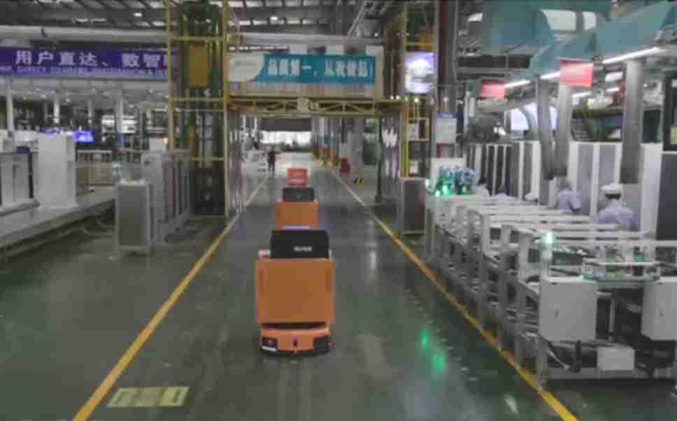 为车载冰箱物流配送打造的智能解决方案,,,包含产中物流通过潜伏举升AMR搬运至线边,,产后成品物流智能仓储,,流程包含产中物流智能齐套入库,,,,线边安灯叫料AMR智能配送至线边,,,成品入库、、、出库,,,通过无人堆高车机器人,,,智能仓储管理替代人工作业管理,,,,实现更高存储、、更高效率、、、、更具柔性化的解决方案。。。